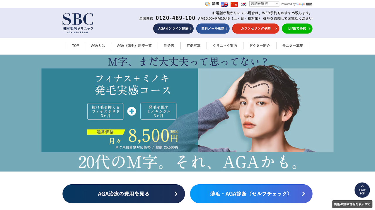 AGA(男性型脱毛症)は進行性ですが、現在では医療機関で適切な治療を受けることで、その進行を抑制したり発毛効果を期待することができます。